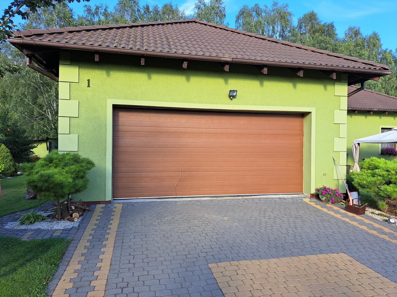 - 9 - Poliuretanowa emalia wodorozcieńczalna RD-Aquatop PU w kolorze RAL 8007 Brąz sarny na drzwiach garażowych z blachy powlekanej