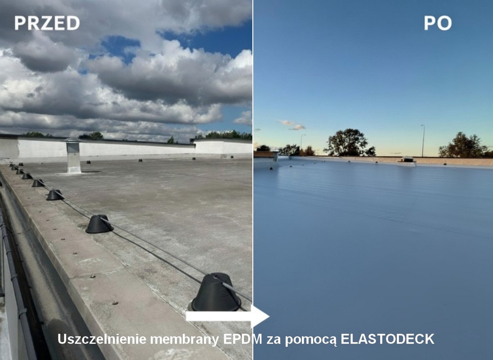 Elastodeck do uszczelnienia membran z EPDM i PVC to jednoskładnikowy, wodorozcieńczalny preparat oparty na bazie dyspersji styrenowo-akrylowych. Elastodeck mostkuje pęknięcia w membranie EPDM, jest wysoce elastyczny oraz zapewnia wodoszczelność powłoki. Doskonale zabezpiecza przed wnikaniem wilgoci oraz jest odporny na pękanie, podąża za ruchami podłoża. Posiada wyjątkowo wysoką odporność na niekorzystne warunki atmosferyczne.