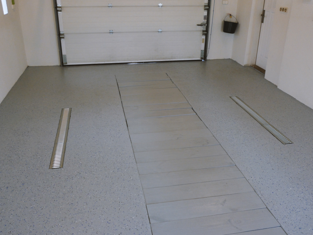 Betonowa podłoga w garażu narażona jest na uszkodzenia mechaniczne oraz kontakt z olejami i smarami. Aby zabezpieczyć ją przed uszkodzeniami, brudzeniem oraz pyleniem, a tym samym zwiększyć jej trwałość, dobrym sposobem jest zastosowanie dwuskładnikowej żywicy epoksydowej o dużej odporności mechanicznej oraz chemicznej na oleje, paliwo i rozpuszczalniki. Powłoka jest gładka, wytrzymała i łatwo zmywalna. Dodatkowym atutem tego typu rozwiązania jest łatwość aplikacji.