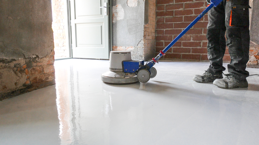 Nowa, jednodniowa, czysta posadzka epoksydowa nie wymaga szlifowania i czyszczenia przed aplikacją lakieru.