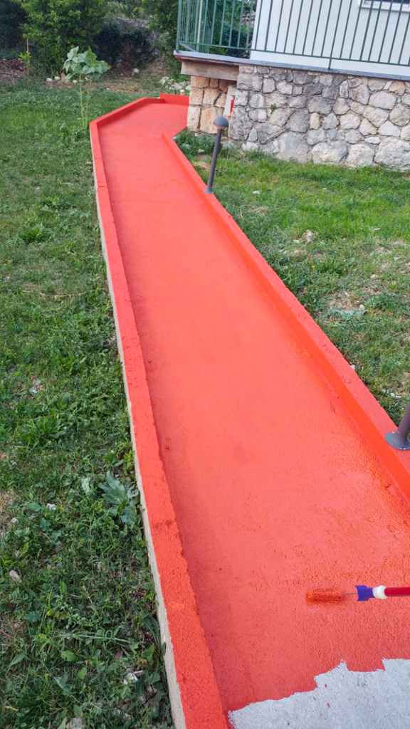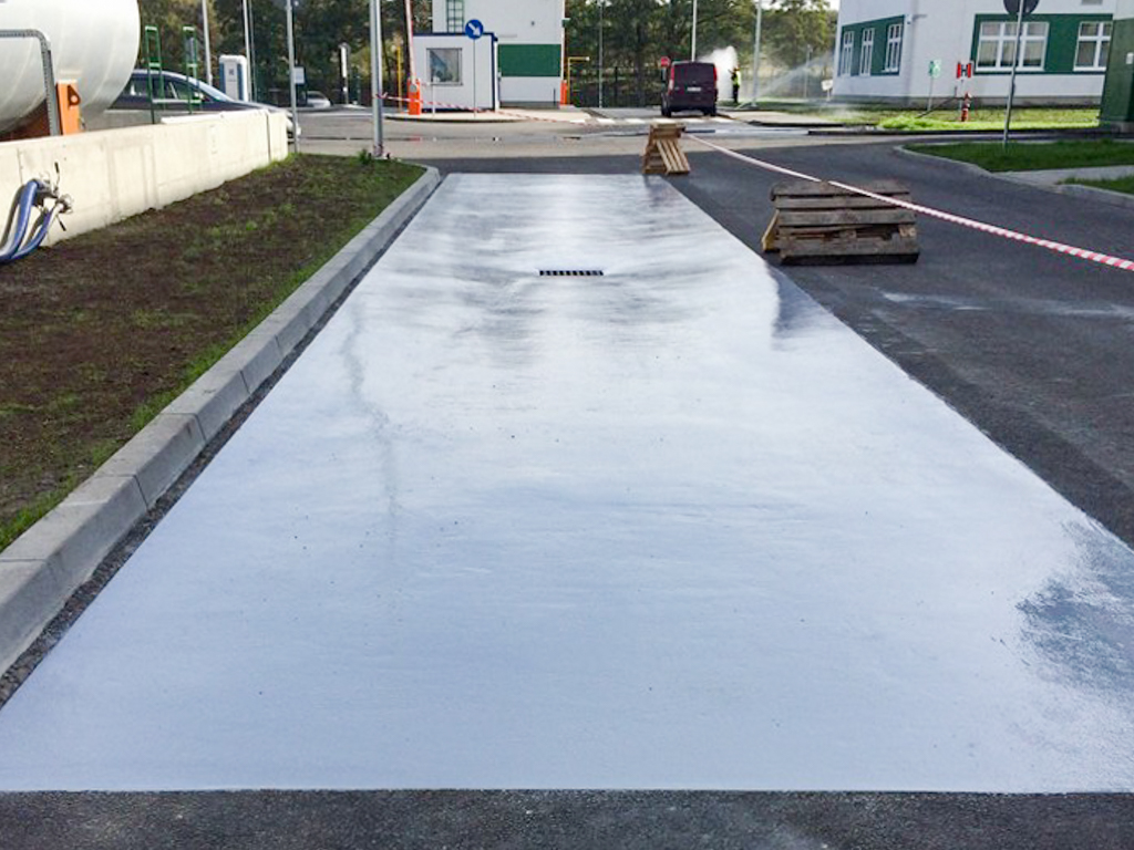 Wierzchnia powłoka pokryta poliuretanem gwarantuje doskonałą odporność mechaniczną i chemiczną – może wytrzymać nie tylko ruch pieszy (np. na chodnikach czy podejściach do domów), ale również ruch kołowy (np. na podjazdach do garaży, rampach betonowych, zewnętrznych kanałach samochodowych). Warstwa poliuretanowa chroni również podłoże przed promieniowaniem UV, utratą koloru posadzki oraz zmiennymi warunkami atmosferycznymi. Zastosowanie tego systemu farb podkładowo-nawierzchniowego to gwarancja trwałego i estetycznego wykończenia powierzchni betonowych.