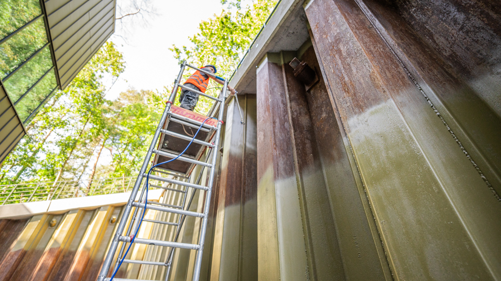 Jeżeli oprócz ochrony antykorozyjnej, wymagane jest także estetyczne wykończenie, jako drugą warstwę polecamy farbę do blachy powlekanej Metal Unicoat o satynowym wykończeniu. Ten system został zastosowany w naszym projekcie.