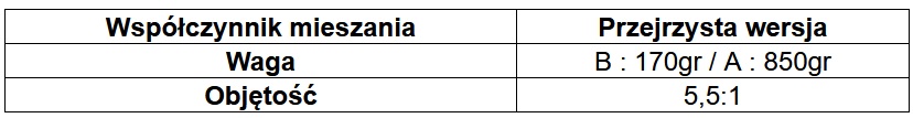 Czas mieszania: 2 godziny w temperaturze 20°C / 68°F. Po tym czasie produkt nie nadaje się już do użycia.