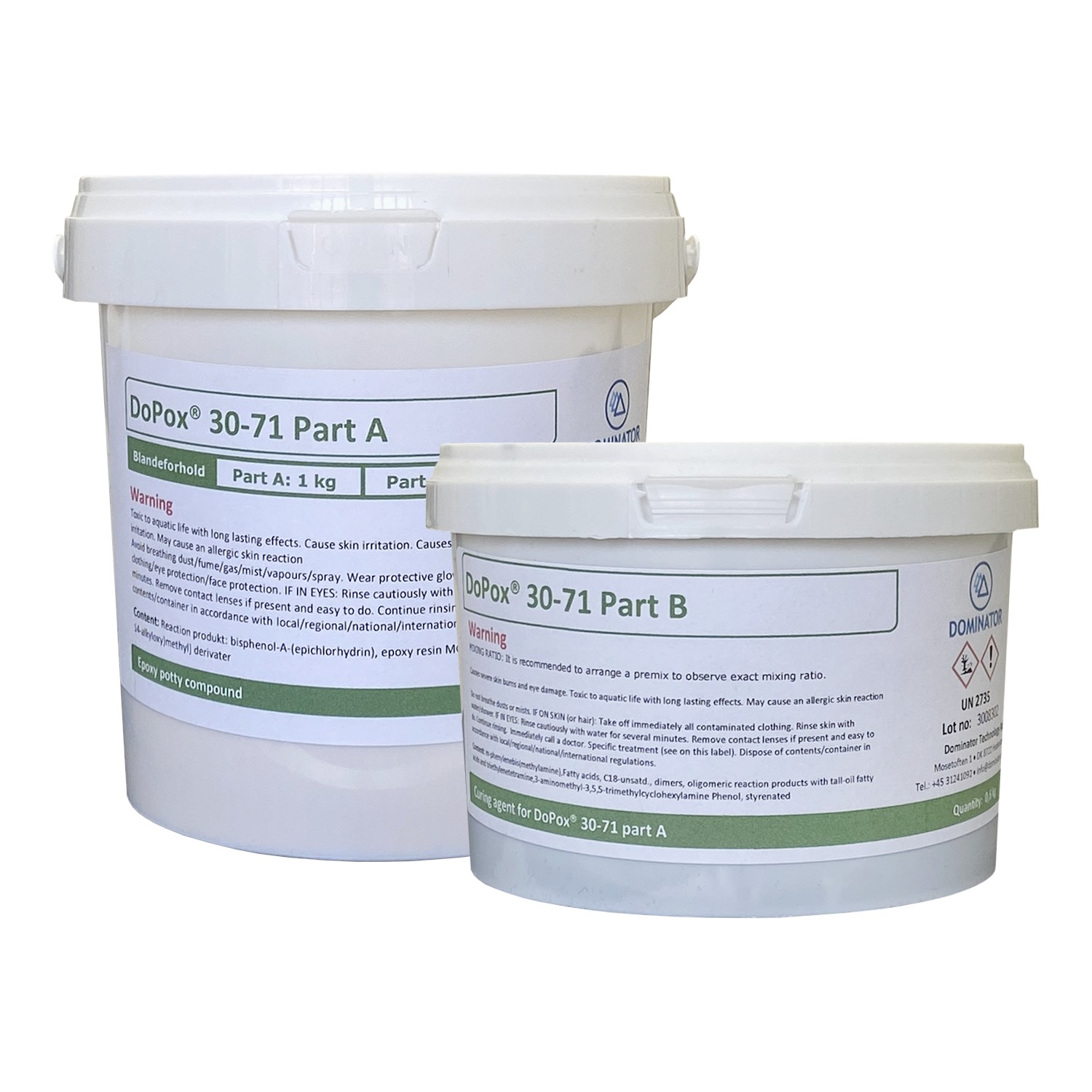 Poprzez gruntowanie uzyskujemy jednolity kolor podłoża. Dzięki temu wszelkie pozostałe nierówności i ubytki w posadzce są bardziej widoczne i łatwiejsze do wypełnienia. Ubytki te należy wypełnić stosując szpachlę epoksydową do małych i dużych ubytków Dominator Dopox 30-71. Przed rozpoczęciem wypełniania proponujemy zaznaczyć wszystkie nierówności pisakiem, aby podczas wyprawek, nie pominąć żadnego miejsca.