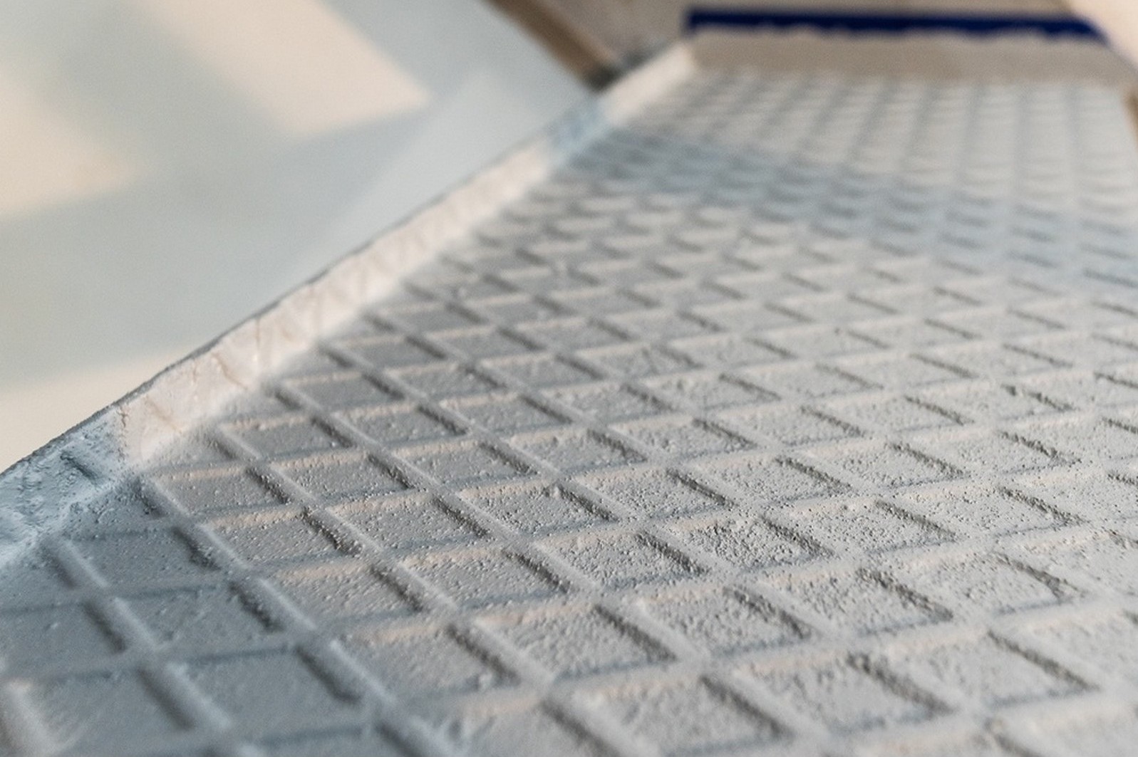 Zdjęcie przedstawia chropowatą strukturę powierzchni uzyskaną przy zastosowaniu farby Suregrip Aqua w realizacji posadzkowej.