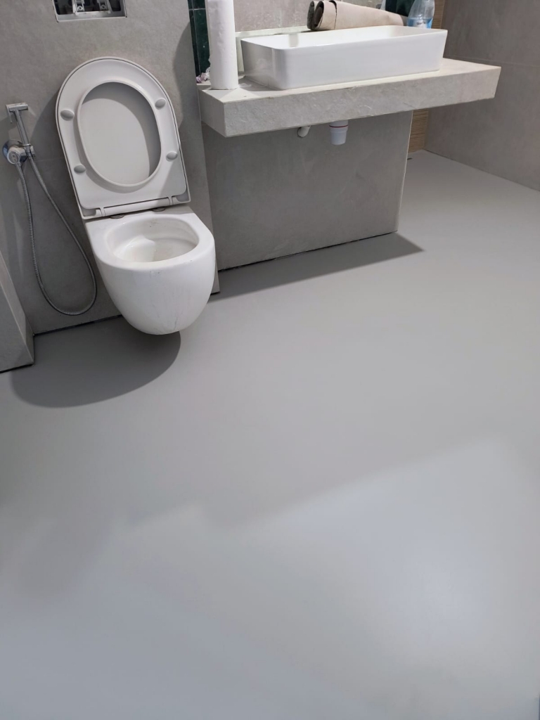 - 4 - Hydrograff HP bezbarwny satyna - lakier na posadzce z mikrocementu w biurowcu