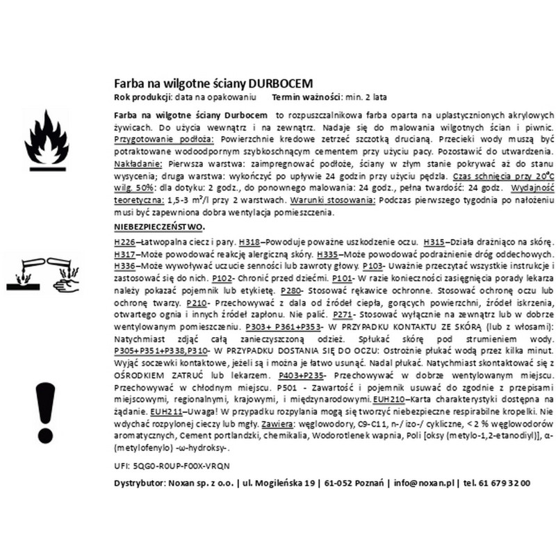 Durbocem paint for damp walls can be used on all chalk and cement substrates. It allows for easy, convenient, and effective renovation of walls damaged by water and protects them from new damage caused by moisture accumulation. It creates an aesthetic white finish.