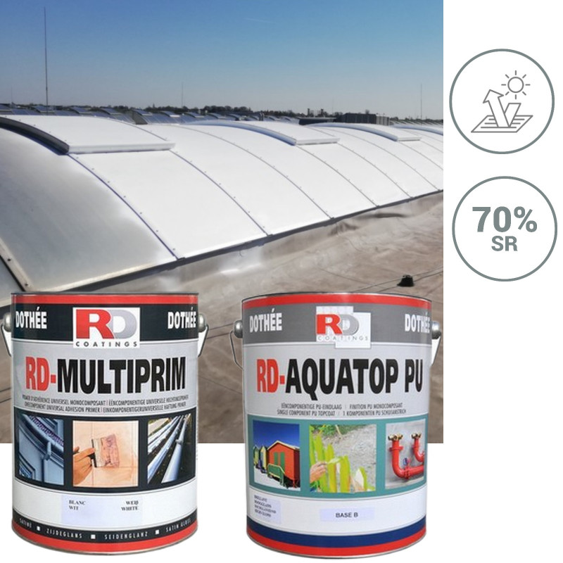 The roof skylight system allows you to quickly and accurately cover skylights and reduce sunlight exposure. The white color effectively reflects sunlight. The system consists of Multiprim primer and RD-Aquatop PU topcoat.