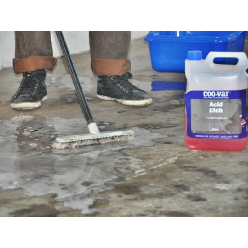 Kwas do wytrawiania Acid Etch to połączenie kwasów i substancji powierzchniowo czynnych w roztworze. Acid Etch powinien być zastosowany w przypadku bardzo gładkich powierzchni oraz betonowych posadzek zacieranych mechanicznie, gdy piaskowanie lub szlifowanie mechaniczne nie jest stosowane. Produkt niezbędny, gdy chcemy zapewnić dobrą przyczepność farby do powierzchni, a mechaniczne szlifowanie powierzchni nie jest możliwe.